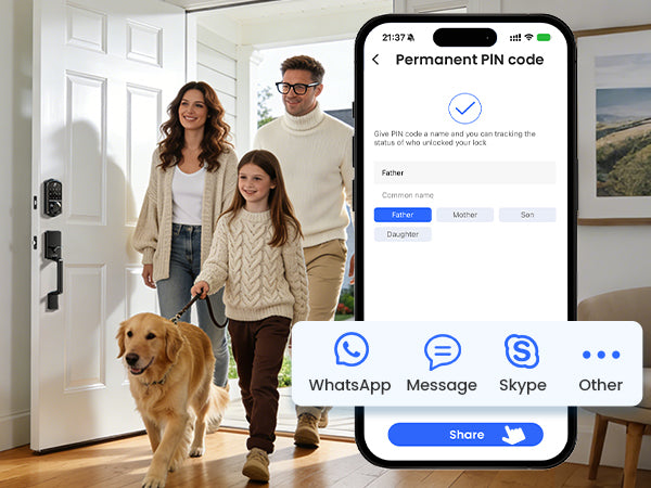 Set codes that are easy for family to remember. Update them from the app or directly on the lock.