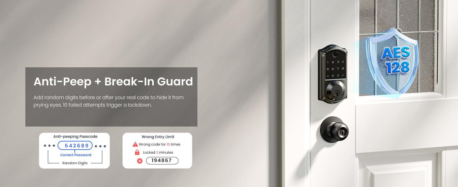 On-Device Data Storage | Anti-Peep Keypad | Break-In Alarm