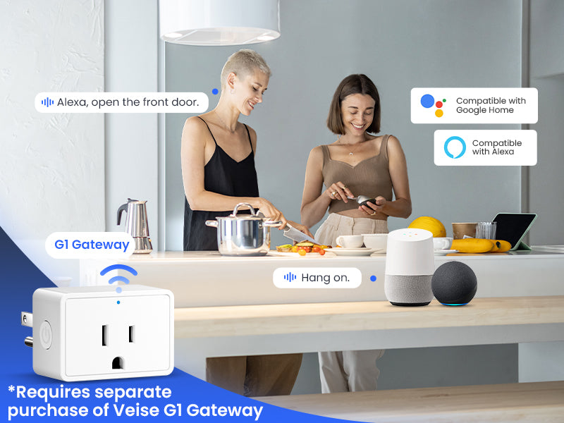 Works with Alexa and Google Home when connected to the G1 gateway (requires 2.4GHz Wi-Fi).